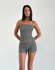 THE TOTORI TOP, A CAMI TOP WITH STRAIGHT NECKLINE, THIN ADJUSTABLE STRAPS AND PRINCESS SEAMS IN SAGE GREEN AND WHITE CHECK ON STRETCH CRINKLE FABRIC. PLEASE NOTE - THERE HAS BEEN A DESIGN CHANGE TO THIS STYLE AND THE HEM...