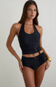 Desata tu espíritu audaz con el traje de baño KASEM. Este modelo de una sola pieza cuenta con un escote pronunciado y una espalda baja que desafía lo convencional. Con su diseño de halter y textura negra, estarás lista para...