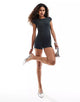 THE KRISTA DRESS IN NAVY POPLIN FABRIC. MIDI LENGTH DRESS TO JUST ABOVE THE ANKLES, WITH HOOK AND EYE DETAILING FROM THE BUST TO WAIST. FEATURING A SLIGHT SWEETHEART/ PLUNGE BUST WITH THIN CAM STRAPS.