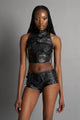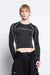 Atrévete a destacar con la 'Faggot Longsleeve Black Top'. Este ajustado top de lycra con líneas de estilo racing es tu aliado para deslumbrar. La frase rizada en rhinestones añade un toque deslumbrante . Disponible en negro, elige tu estilo...