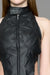Atrévete a desafiar lo convencional con la Denim Biker Top de Namilia. Su diseño estructurado en efecto piel negra y el ajuste favorecedor moldean tu figura mientras los laterales abiertos y tiras ajustables aportan audacia. Perfecta para una noche...